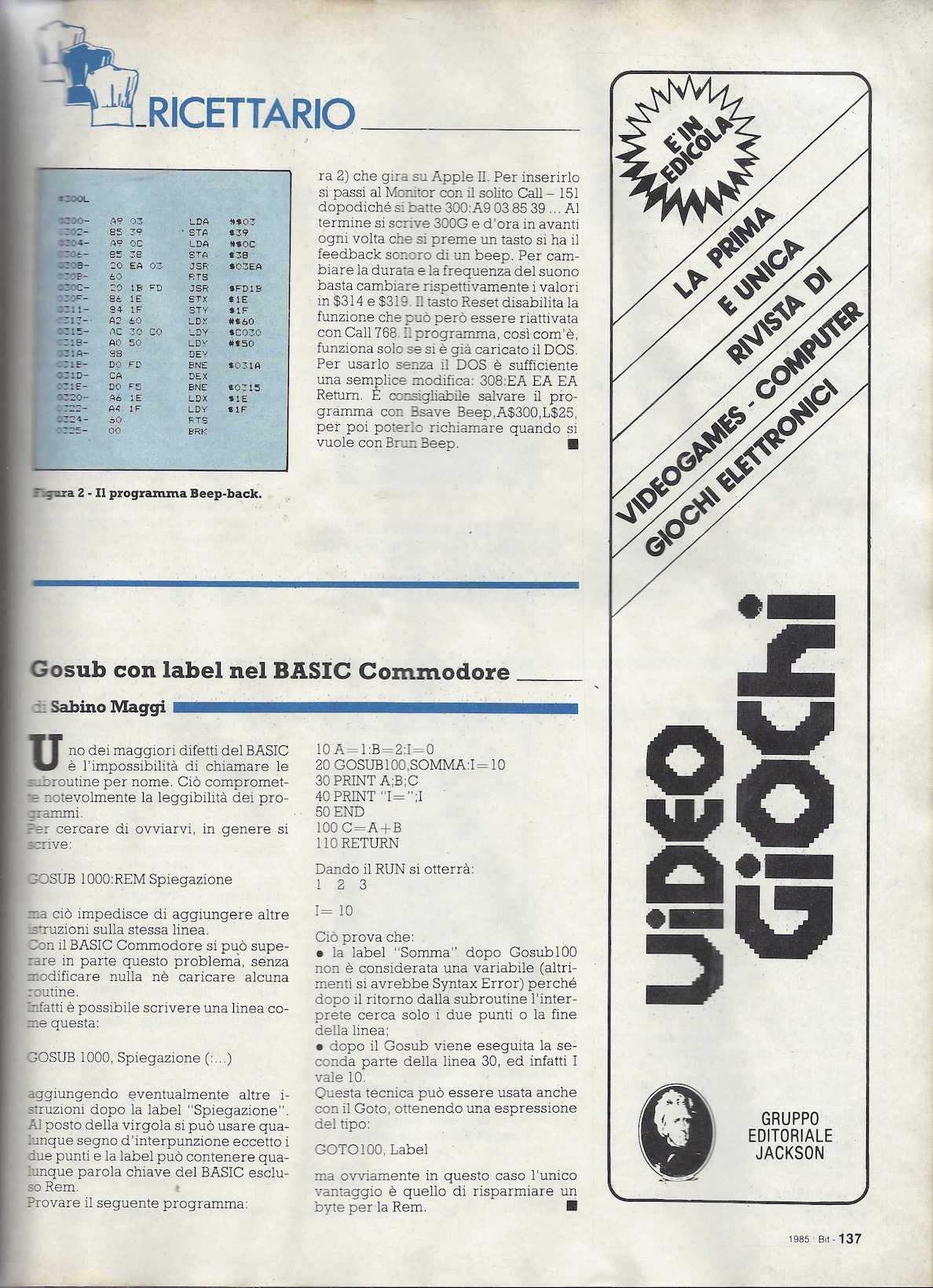 Non è un caso che il mio primo articolo tecnico sia stato proprio dedicato ad un trucco di programmazione del Commodore 64, scoperto per caso. Più che un articolo era una breve lettera e il testo, a rileggerlo oggi, è davvero orribile, sembra più la dimostrazione di un teorema che un articolo da rivista, però quelli di Bit sono stati così gentili da pubblicarlo e mi hanno anche pagato!