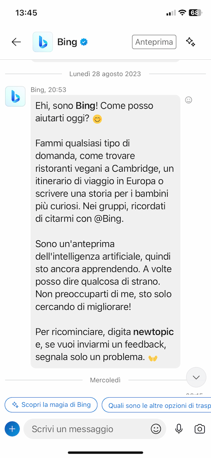 Tutto bene, se non fosse che non dovevo andare all’aereoporto di Napoli, ma a quello di Bari! Tanto più che, prima di iniziare, Bing mi aveva chiesto l’accesso alla mia posizione corrente.