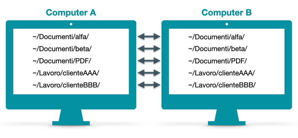 La cartella sincronizzata risiedente su B può anche avere un nome diverso e può essere situata in una posizione diversa del disco rispetto alla cartella originale su A.1
