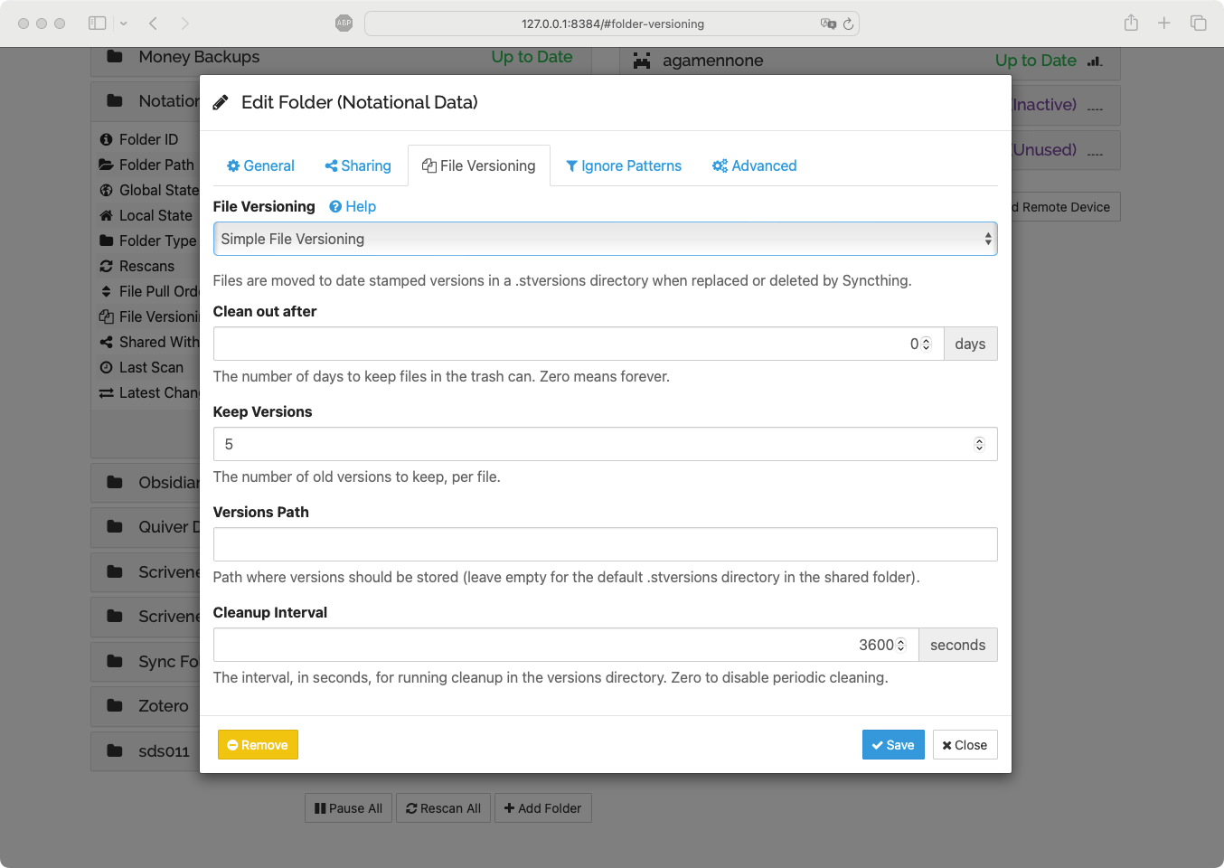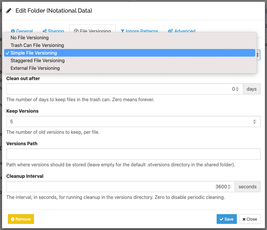 Un’opzione utile ma piuttosto trascurata di Syncthing (e non solo), è la possibilità di conservare più versioni dei file di una cartella sincronizzata.