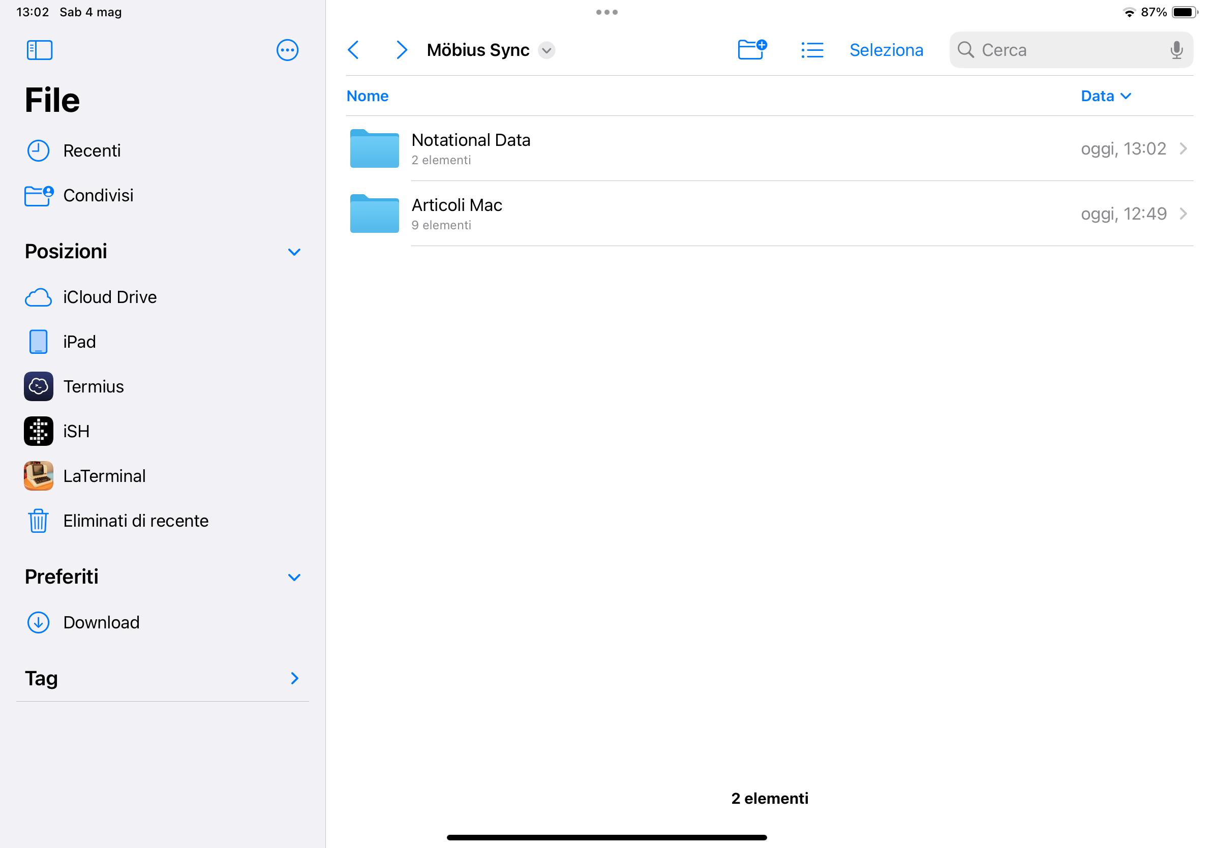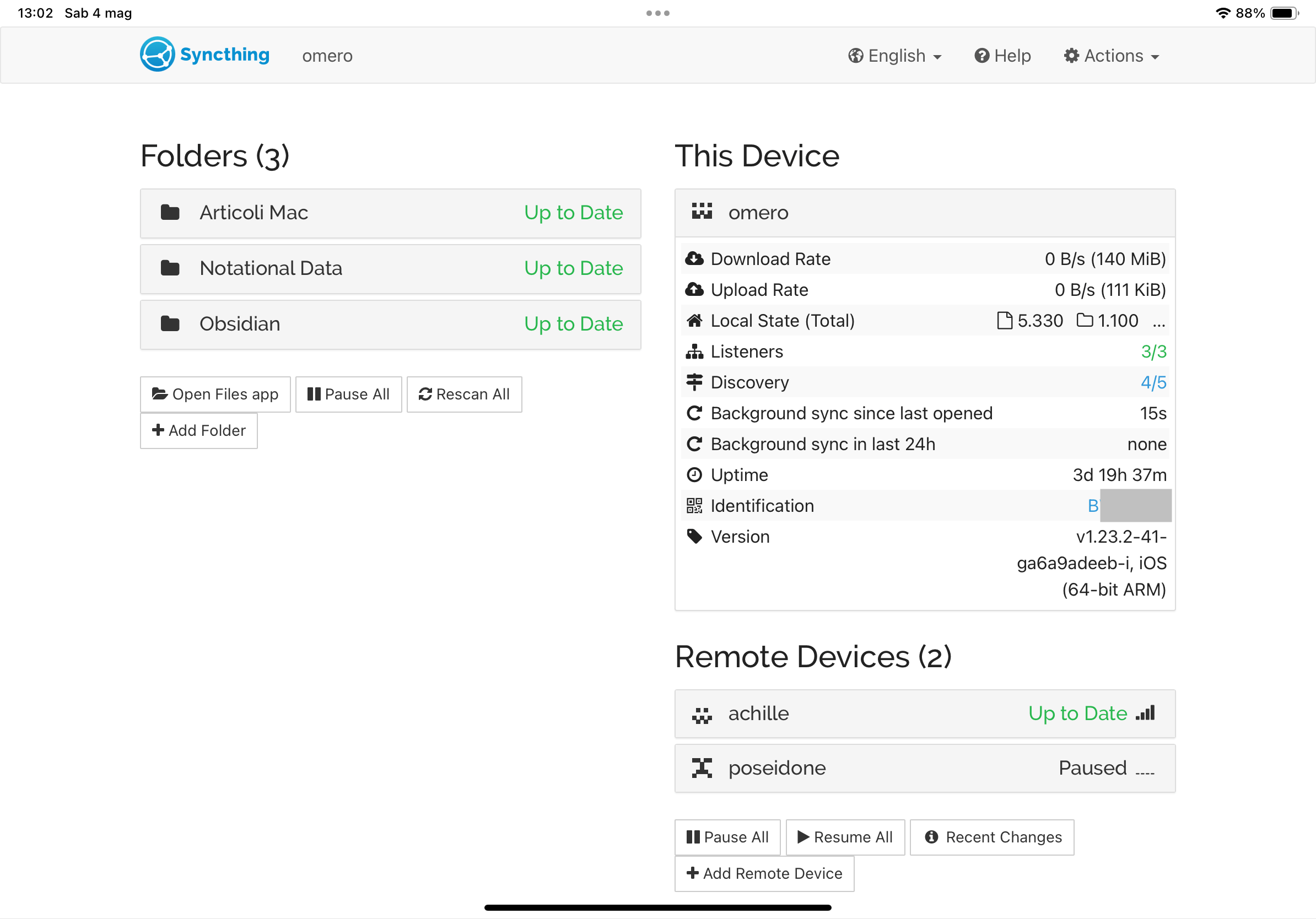 E dato che su iOS la cartella di Obsidian l’avevo messa su iCloud, ora il mio archivio Obsidian viene sincronizzato automaticamente anche con i dispositivi iOS su cui non gira Möbius Sync.3